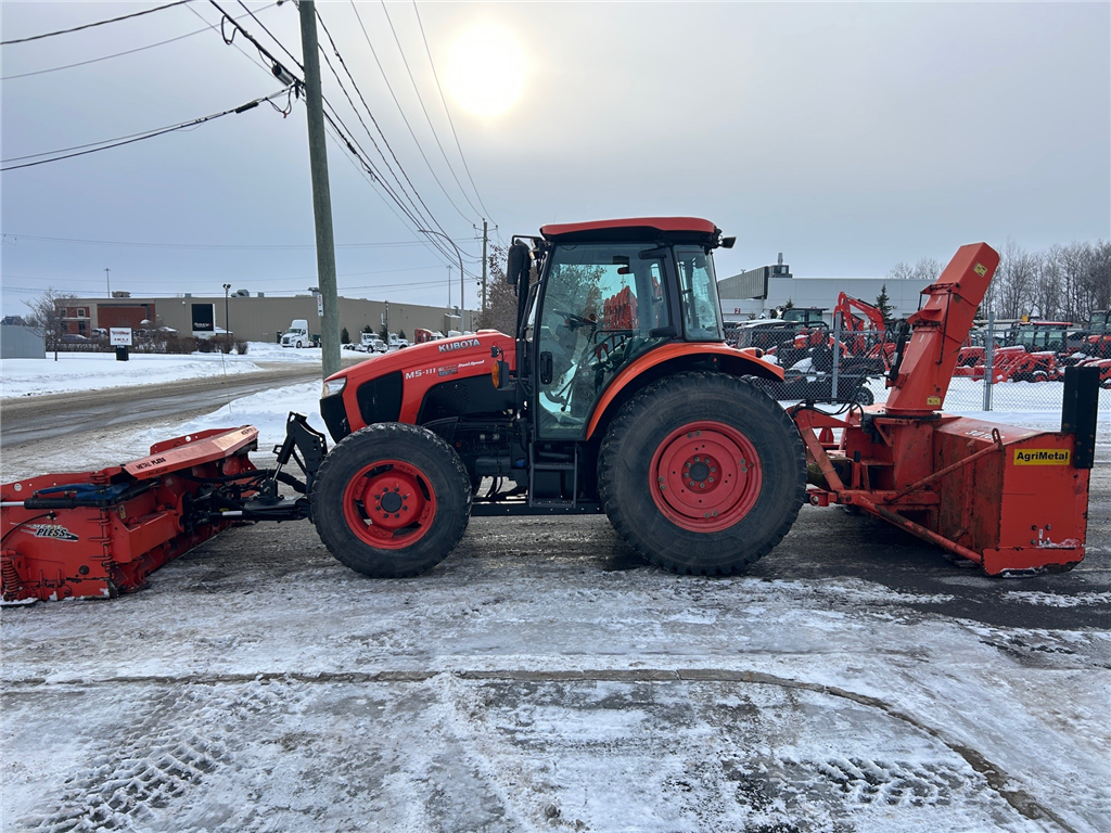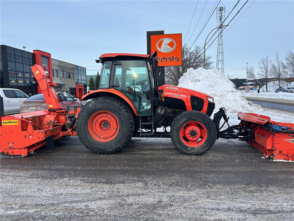 TRACTEUR 4X4 CABINE A/C RADIO TRANSMISSION MANUEL 24/24 HI-LO INVERSEUR AU VOLANT LAME A NEIGE METAL PLESS 8-13 ET SOUFFLEUR AGRIMETAL MODEL MS30102